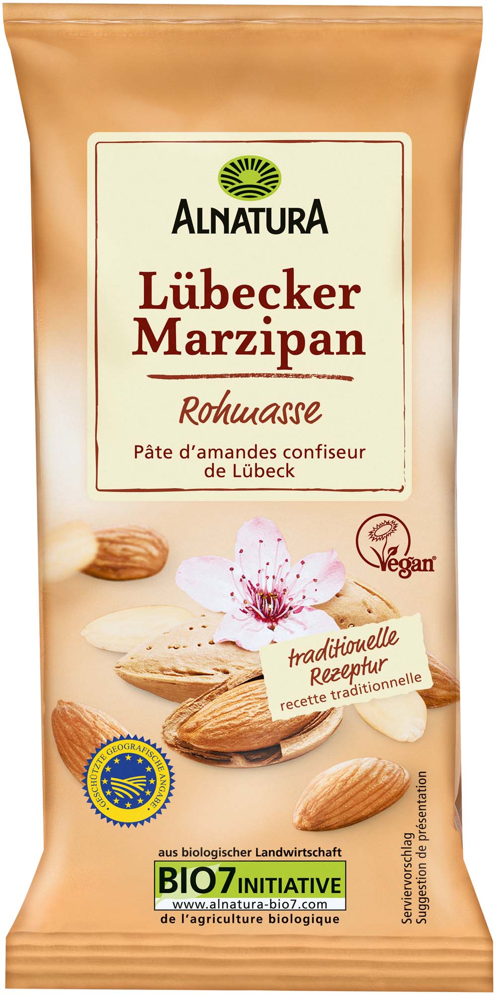 Diese Bio-Marzipanrohmasse stammt aus Lübeck, wo sie nach traditioneller Rezeptur und in einem besonderen Herstellungsverfahren produziert wird. Das Ergebnis: Ein Marzipan mit besonders aromatischem Geschmack. Alnatura Lübecker Marzipan wird aus sorgfältig ausgewählten Bio-Zutaten hergestellt, ist vegan und ideal zum Backen und Naschen.