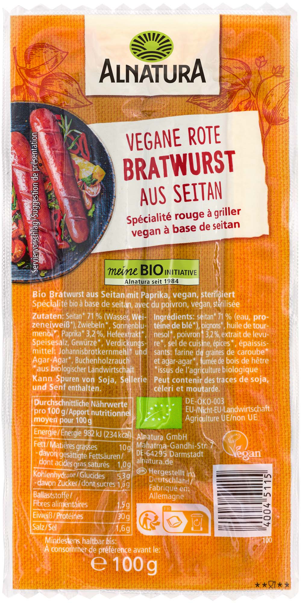 Schreibe die erste Bewertung für „Alnatura Bio Rote Bratwurst Seitan 100g“ Antworten abbrechen
