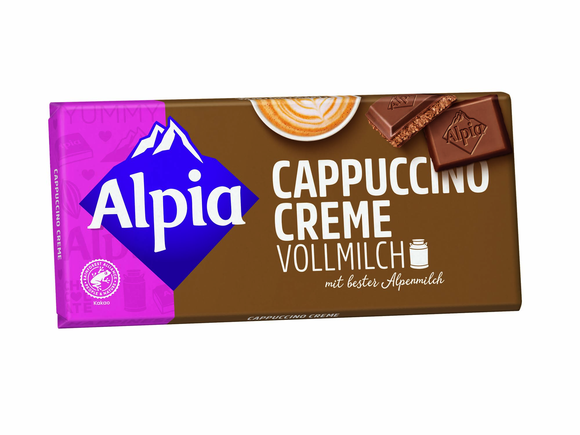 Gefüllte Alpenvollmilchschokolade mit Milchcreme auf Kaffee-Milchcreme