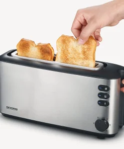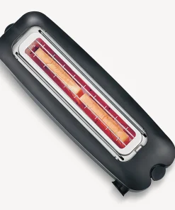 Einstellbarer Bräunungsgrad, zentriertes Rösten der Brotscheiben, eine Defrosterstufe zum Auftauen – der kleine, edle Toaster mit doppelwandigem Edelstahl-Gehäuse lässt keine Wünsche offen. Der Temperatursensor bewahrt zudem vor verbrannten Scheiben.