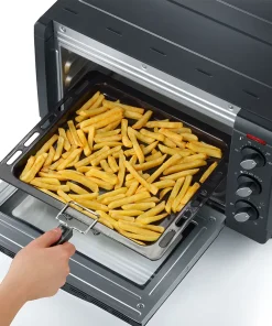 Dit veelzijdige toestel is perfect voor het bereiden van pizza’s, frietjes, gebraad, stoofschotels, cakes, broodjes en nog veel meer. Het kan ook gemakkelijk grote pizza’s en cakevormen aan met een diameter tot 30 cm. Met de optie om boven- en onderwarmte afzonderlijk of gecombineerd te schakelen, bereik je optimale resultaten. Het apparaat heeft een vermogen van ca. 1.500 W en een inhoud van ca. 20 liter. Het apparaat heeft temperatuurinstellingen van 100 tot 230 °C en een timer van 60 minuten met een geluidssignaal wanneer de ingestelde tijd is verstreken. De opwarmtijd is ook kort.
