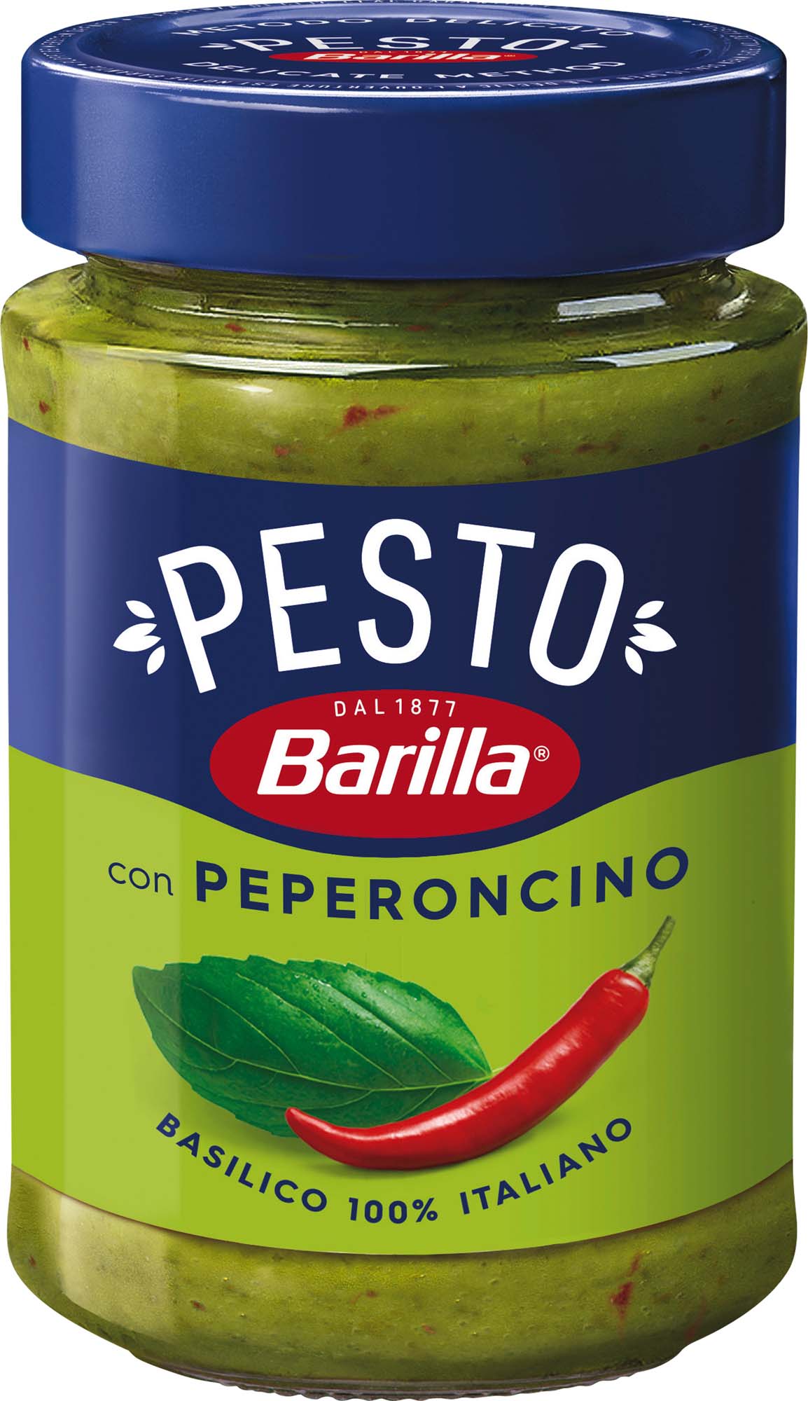 Im Barilla Pesto Basilico e Peperoncino trifft der Duft von 100% italienischem Basilikum auf die angenehme Schärfe italienischer Chilischoten. Diese Kombination sorgt für ein einzigartiges Geschmackserlebnis und verleiht vielen Gerichten eine fruchtig-scharfe Note. Im Vergleich zum Barilla Pesto alla Calabrese ist dieses Pesto schärfer und perfekt für alle Chili-Liebhaber.