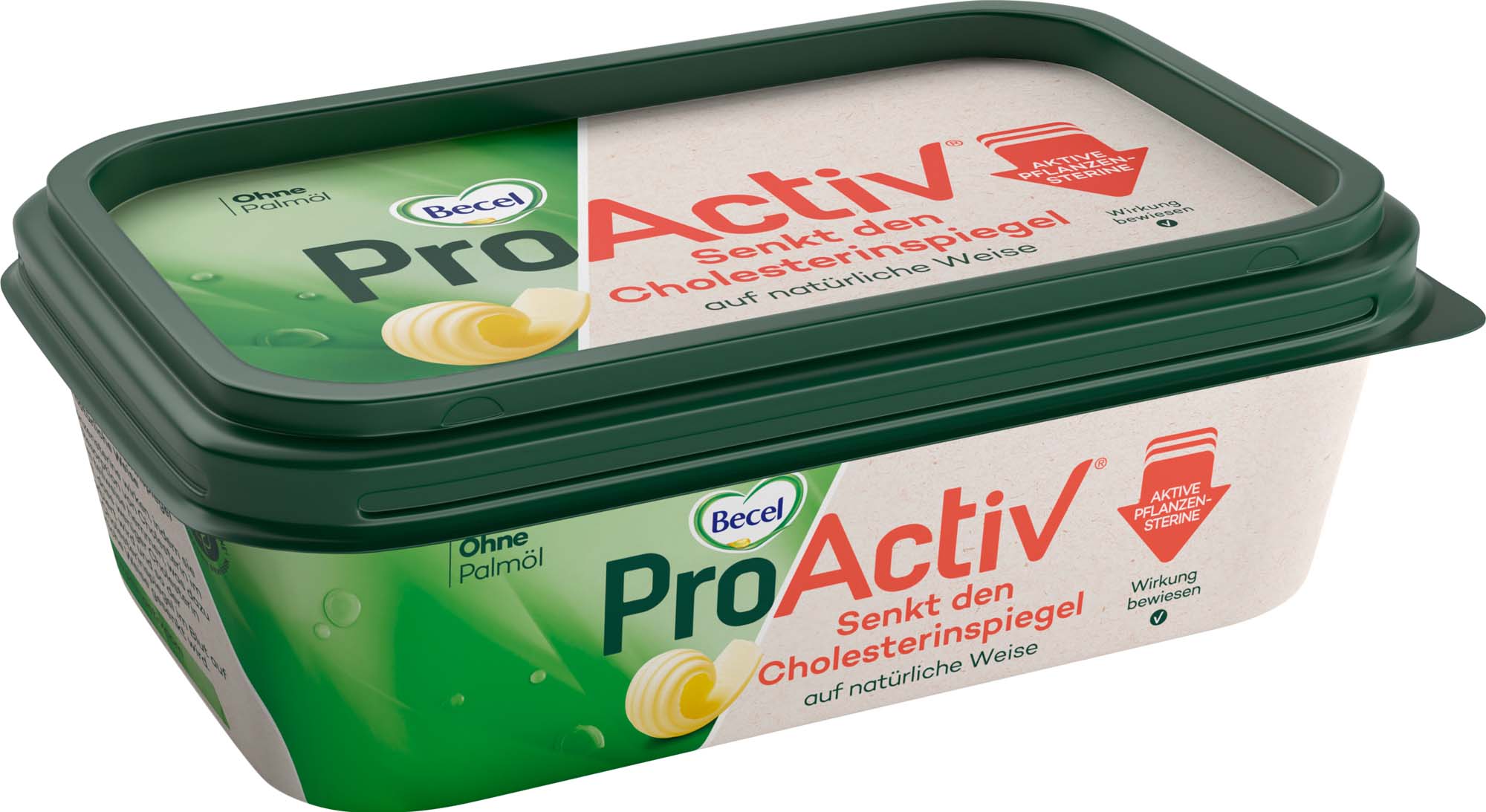 Die Becel ProActiv Halbfettmargarine mit zugesetzten Pflanzensterinen im 225g-Becher ist ein Brotaufstrich für die bewusste Ernährung bei überhöhtem Cholesterinspiegel.