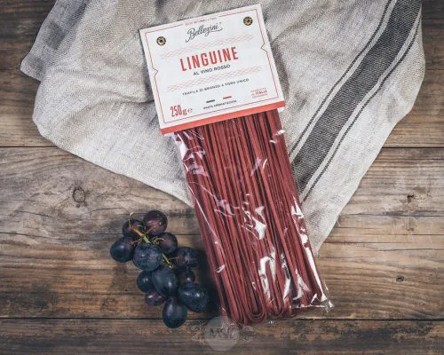 Diese dunkelroten Linguine aus dem Hause Bellezini eignen sich perfekt zu deftigen Gerichten, dunklen Saucen und Wildgerichten sowie zu Käsesaucen.