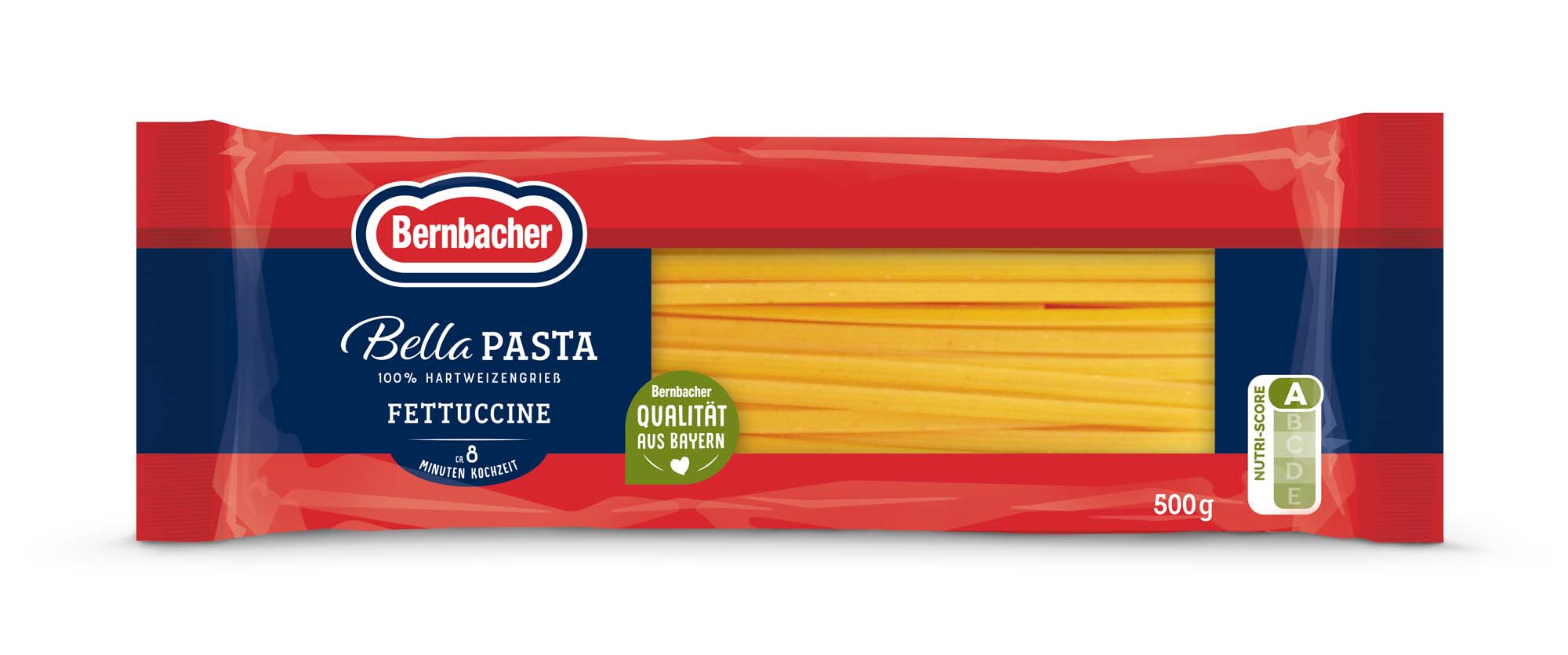 Bella Pasta Fettuccine harmonieren besonders gut mit cremigen Saucen. Ob Käse-Sahne-Sauce, Carbonara, Lachs oder Steinpilz die breiten, flachen Nudeln von Bernbacher bringen in jeden Genuss ihre Qualität aus Bayern ein.