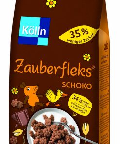 Der Schoko-Klassiker schlechthin, mit knusprigem Schoko-Crunchy und Schoko-Cornflakes, verfeinert mit Kakaopulver, 30% weniger Zucker* und dabei super schokoladig, Bio, vegan, ballaststoffreich und ohne Palmöl