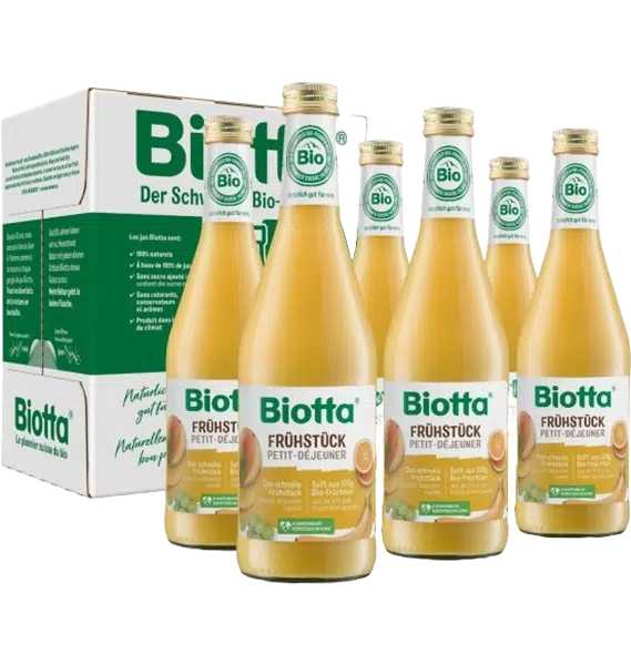 Seit über 20 Jahren wird dieser Klassiker in der Biotta Manufaktur hergestellt und bietet eine schnelle, einfache und gesunde Alternative für alle, die morgens wenig Zeit haben oder die das herkömmliche Frühstück auslassen. Der Frühstückssaft ist perfekt für Frühstücks-Muffel oder für diejenigen, die am Morgen keine Lust haben, frischen Saft zu pressen.
