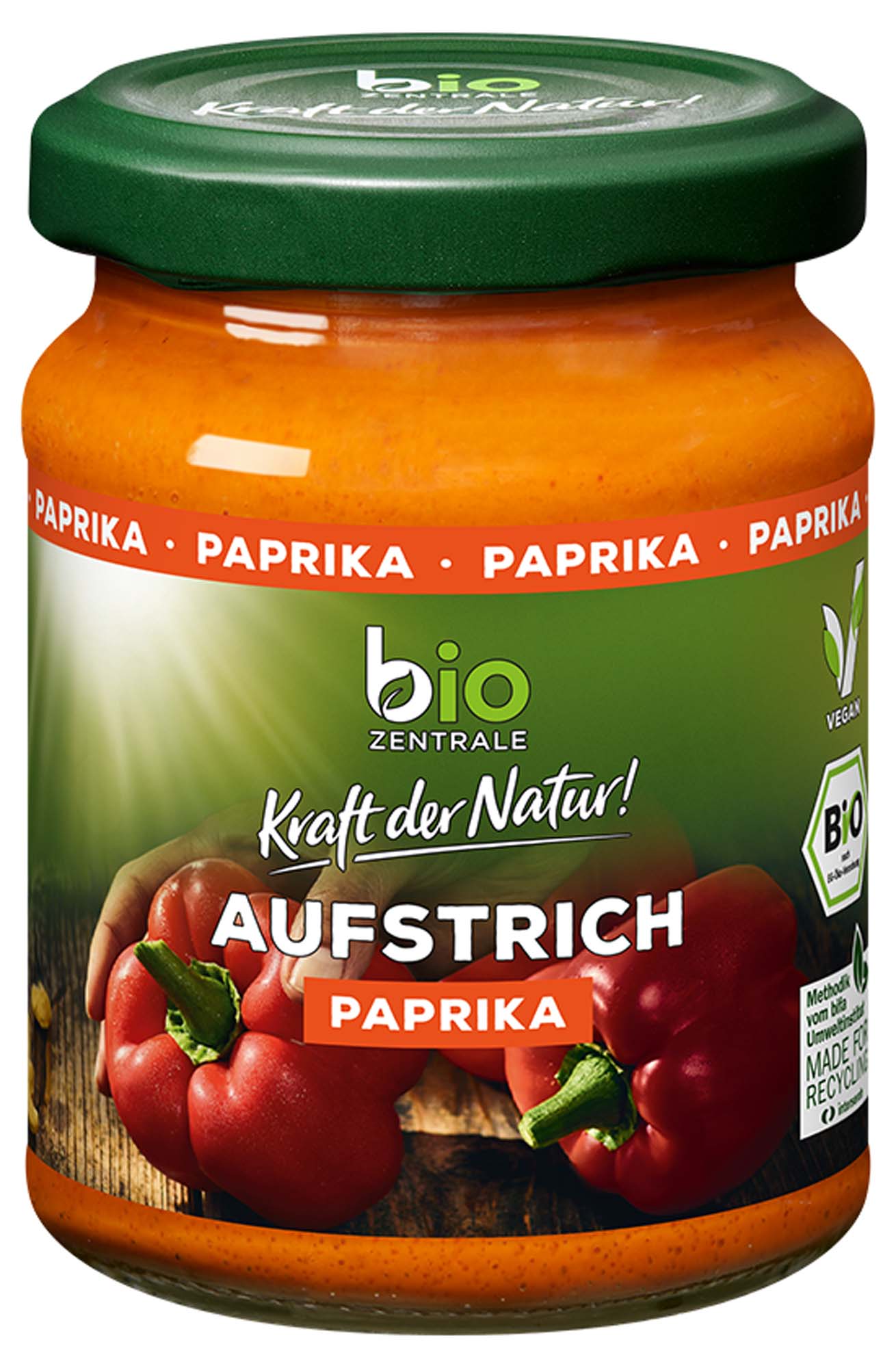 Unser biozentrale Aufstrich Paprika ist ein aromatisch milder Brotaufstrich. Der rötlich-orange, cremige Aufstrich ist herrlich würzig mit einer leichten Schärfe und dazu noch vegan und laktosefrei. Er schmeckt besonders lecker auf frischem Brot, Brötchen, Knäckebrot oder auf unseren biozentrale Mais- und Reiswaffeln sowie unserem Knusperbrot Erbse Linse. Probiere unseren Aufstrich auch zum Würzen und Verfeinern von warmen und kalten Gerichten oder auch für leckere Saucen und Dips. Probiere auch unsere anderen, vielfältigen Aufstrich-Sorten!