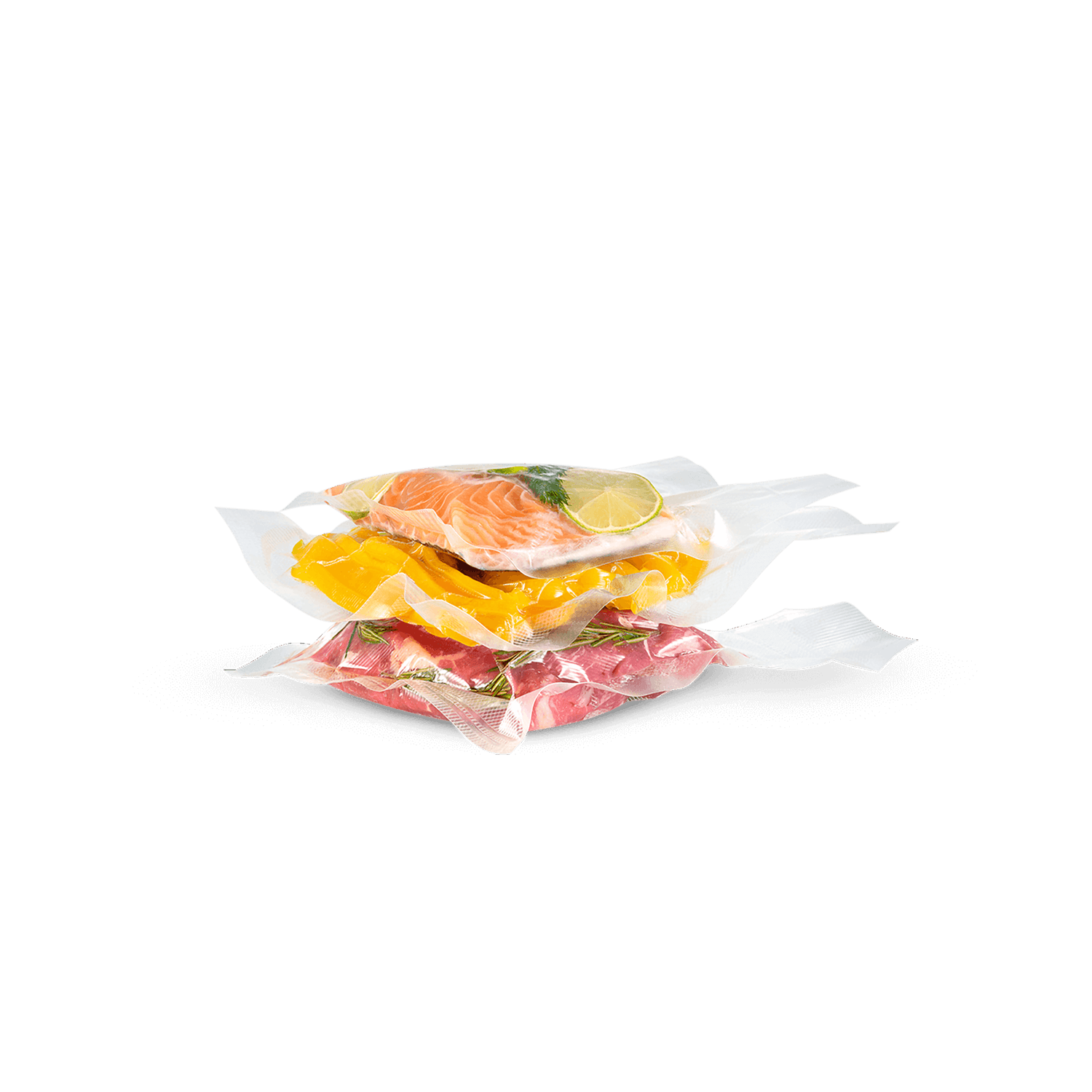 Los alimentos sellados al vacío se mantienen frescos hasta 8 veces más tiempo. Al cocinar, se conserva el sabor natural de los alimentos, la carne se vuelve tierna y jugosa, los nutrientes y las vitaminas no se pierden y las verduras se mantienen crujientes.