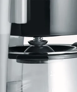 La machine à café dispose d’un porte-filtre pivotant, d’un système anti-goutte et d’un réservoir d’eau transparent.