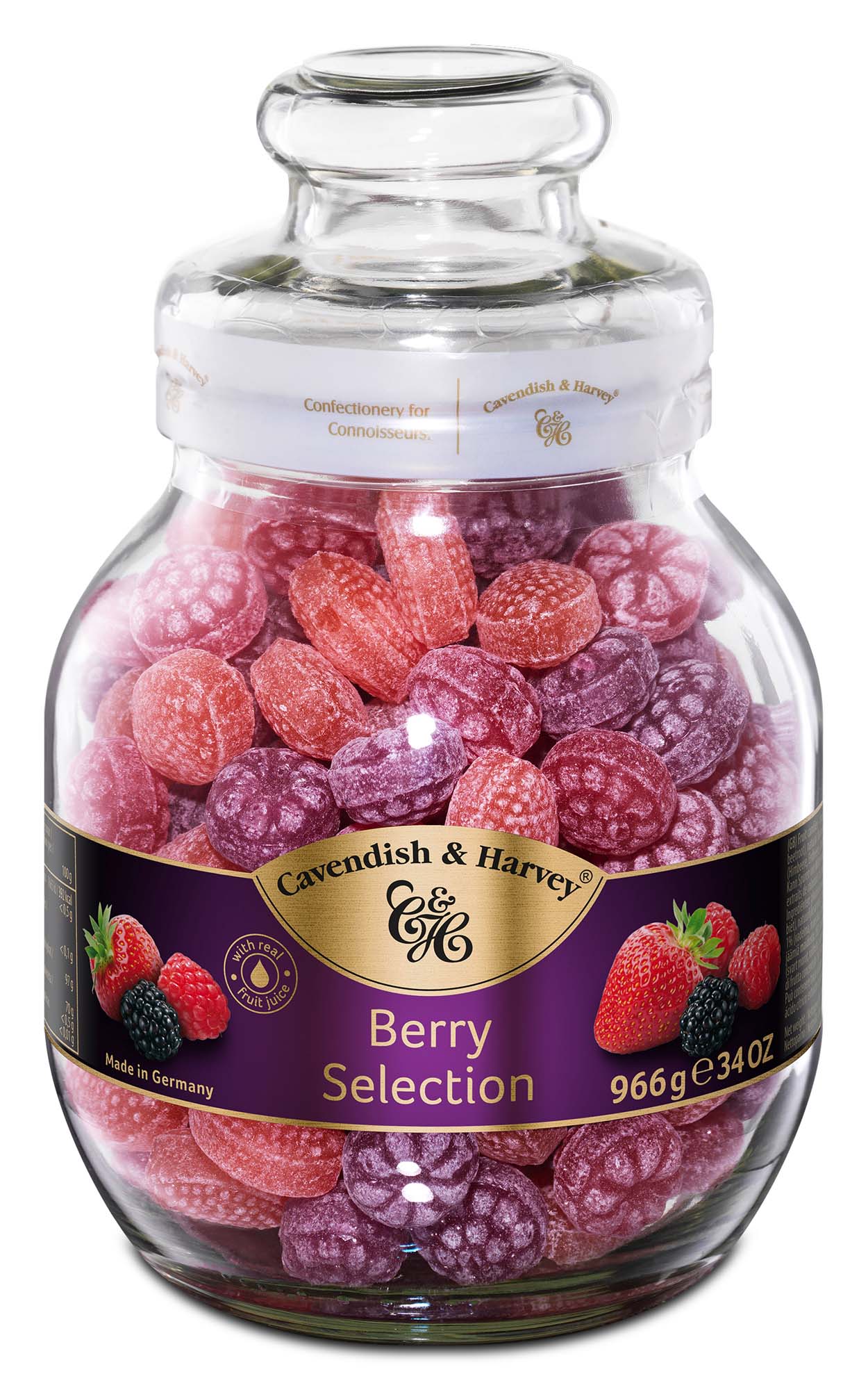 Die Berry Selection Bonbons von Cavendish & Harvey im viktorianischen Glas machen nicht nur geschmacklich ordentlich was her. Die Sorten Himbeere, Brombeere und Erdbeere werden in Fruchtformen geprägt und befördern den Feinschmecker in eine wohlige Atmosphäre.