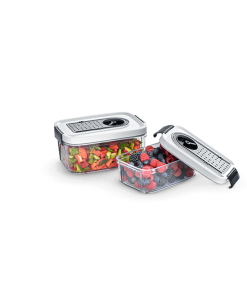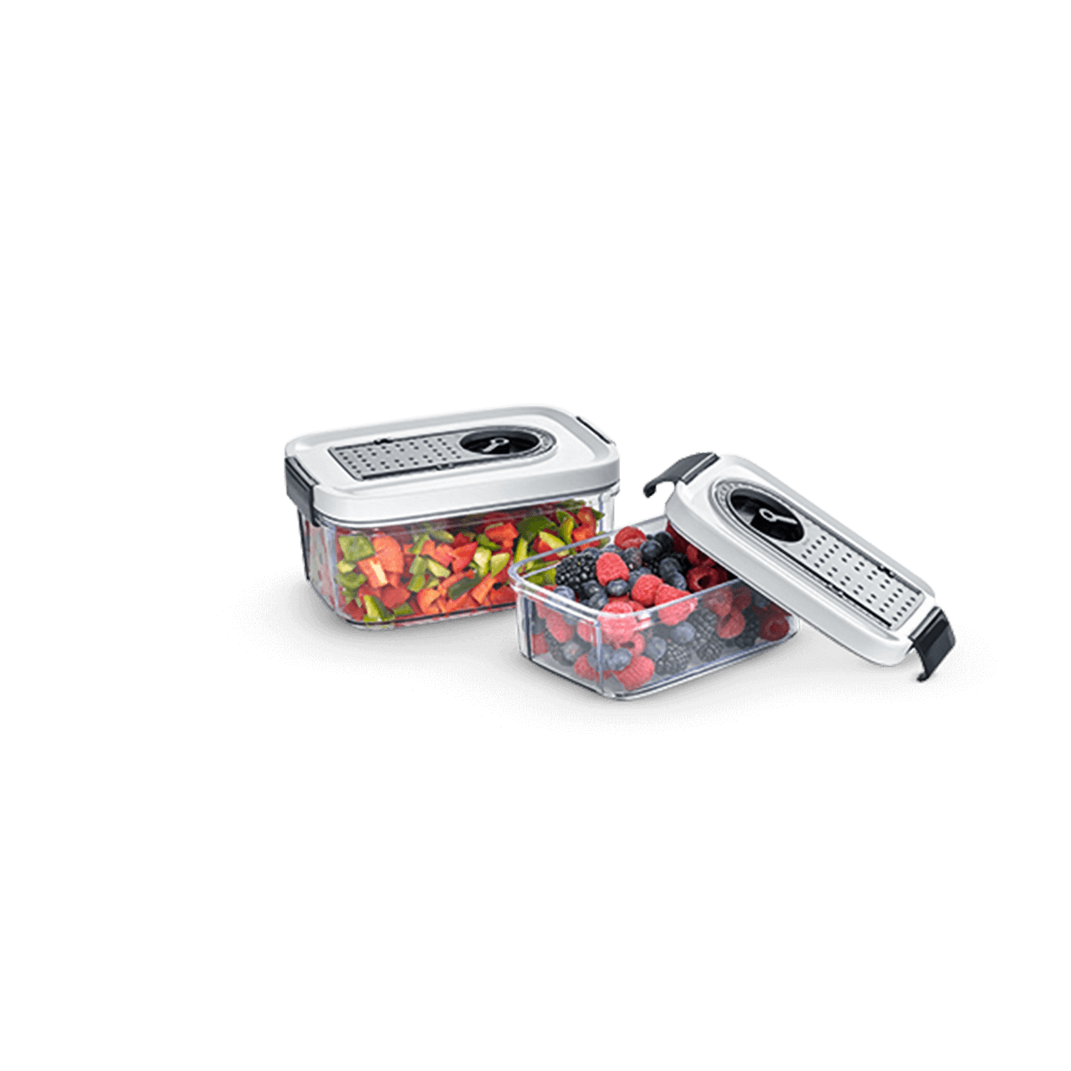 Grazie ai contenitori per sottovuoto SEVERIN, i suoi alimenti potranno essere conservati fino a 8 volte più a lungo rispetto alle tecniche tradizionali, preservando le relative proprietà organolettiche. La particolare struttura del coperchio a tenuta ermetica ne consente l’utilizzo come sacchetto per sottovuoto con una macchina sottovuoto.