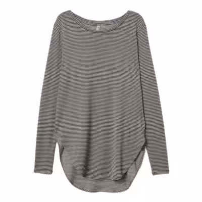 Damen Langarmshirt, Feinstrick, verlängertes Rückenteil, Dunkelgrau/Gestreift, S