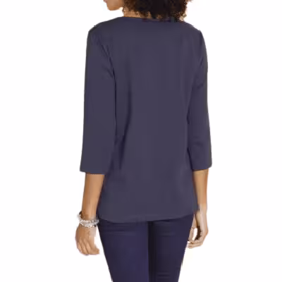 Damen Shirt mit dekorativem Print in Patch-Optik, 3/4 Arm, in Marine, Größe 44