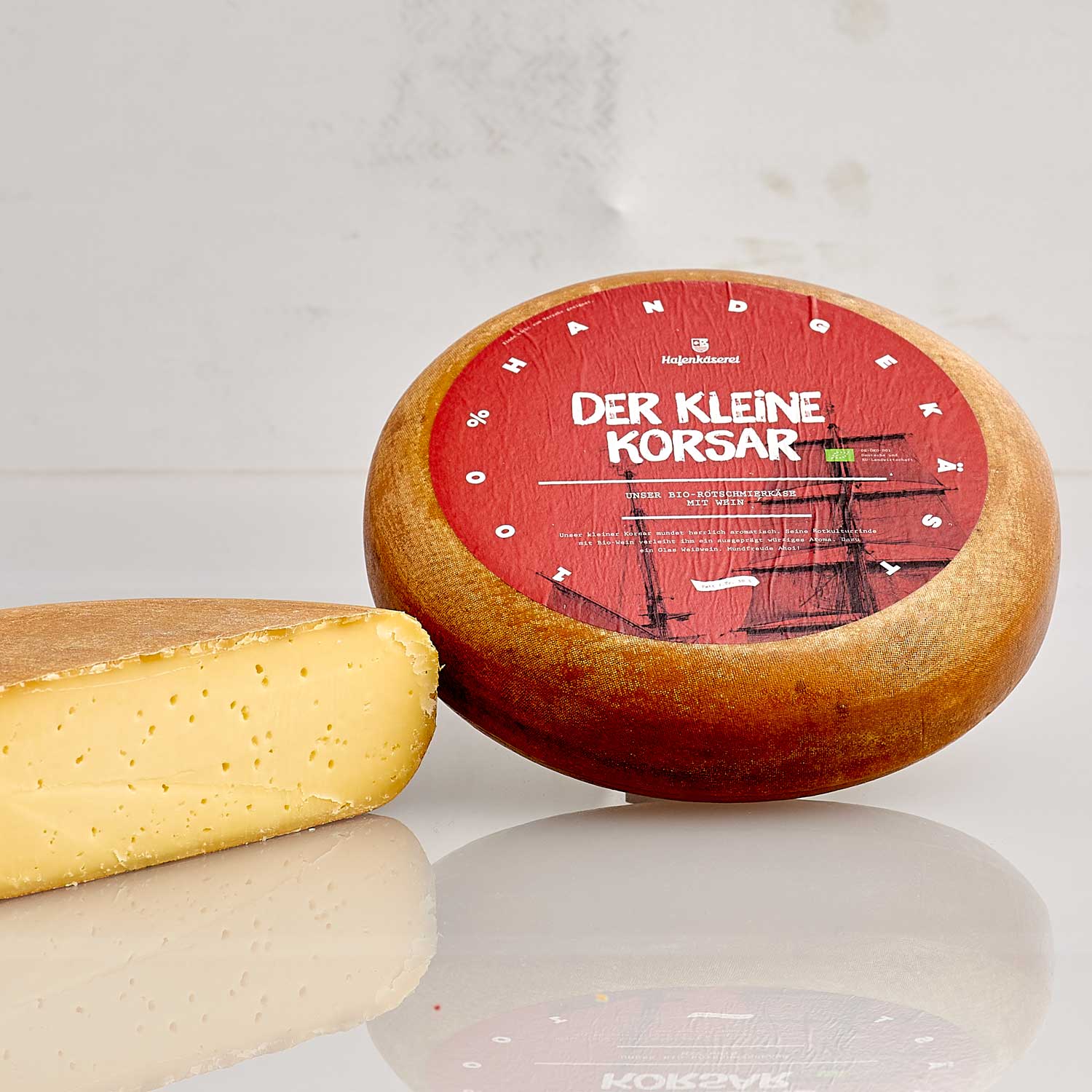 Bio-Rotschmierkäse aus der Hafenkäserei. Seine Rotkulturrinde mit Bio-Rotwein verleiht ihm ein ausgeprägt würziges Aroma