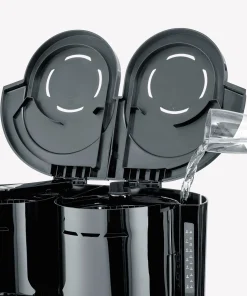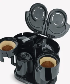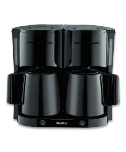 This appliance allows you to prepare two pots of coffee at the same time, each with 8 cups, making it ideal for offices, guesthouses or restaurants. Two thermo jugs with practical brew-through lids guarantee long-lasting, hot coffee enjoyment. With two water level indicators on the front, operation is convenient and offers the best overview. The appliance also has an integrated cable compartment for easy storage of the connection cable.