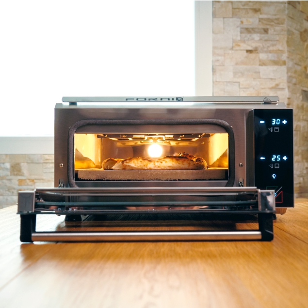Die spezielle Boost-Funktion erhöht die Leistung für 60 Sekunden auf das Maximum, ideal, um zwischen mehreren Pizzen schnell wieder die gewünschte Temperatur zu erreichen. Zudem sorgt die mittig platzierte Beleuchtung für eine gleichmäßige Ausleuchtung des Garraums, sodass du den Backvorgang perfekt überwachen kannst, ohne die Tür öffnen zu müssen.
