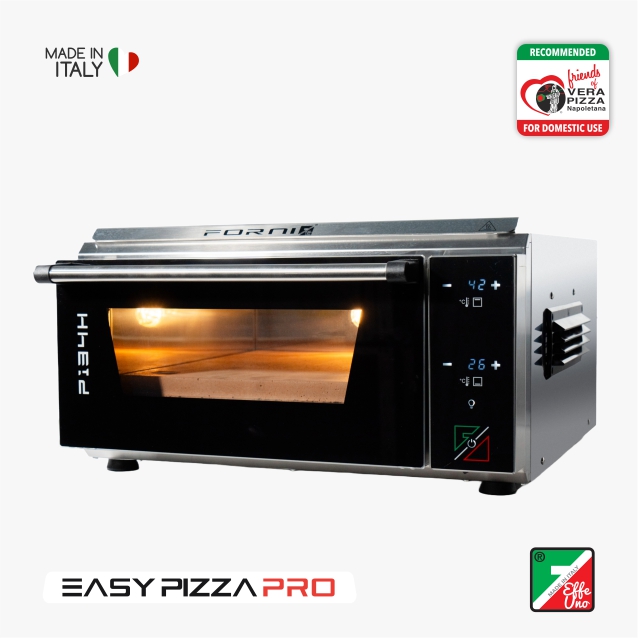 Verwandle deine Küche in eine professionelle Pizzeria mit dem neuen elektrischen Pizzaofen Effeuno P134H 509 PRO aus der Easy Pizza PRO Linie. Dieser kompakte Ofen wurde entwickelt, um exzellente Ergebnisse bei jeder Art von Pizza zu garantieren, und kombiniert höchste Leistung mit innovativer Technologie – für die perfekte Pizza bei jeder Nutzung.