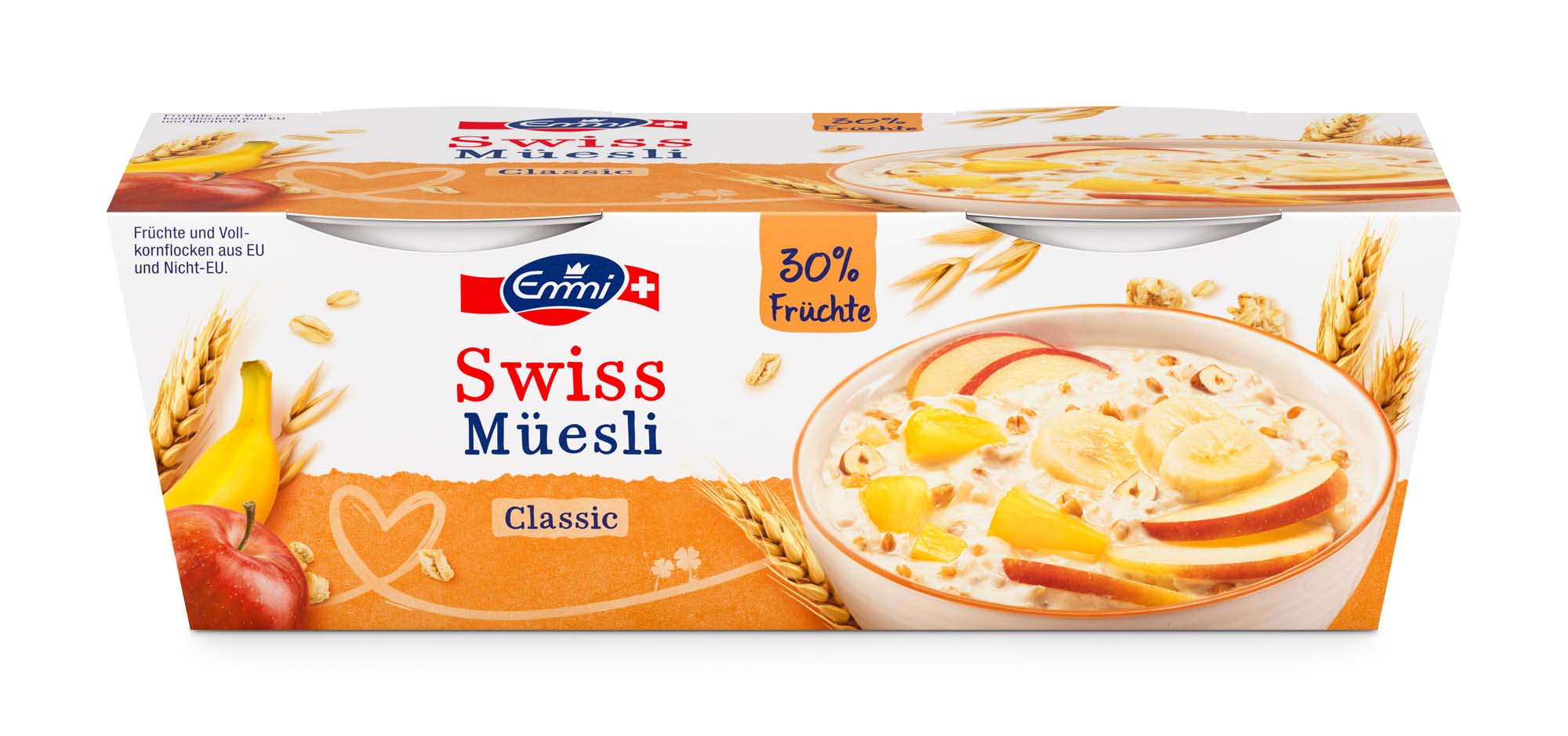 Emmi Swiss Müesli ist eine feine und gesunde Zwischenmahlzeit oder ein vollwertiges Frühstück mit ganzen Fruchtstücken, sonnenverwöhntem Getreide und bester Schweizer Milch aus naturnaher Schweizer Milchproduktion.