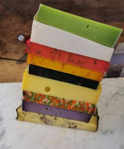 pasteurisierte ZIEGENMILCH, Salz, Pflanzen- und Fruchtsaftkonzentrate (Süsskartoffel, Apfel, Rettich, Spirulina, Kirsche), Lavendel, Labaustauschstoff, Käsereikulturen
