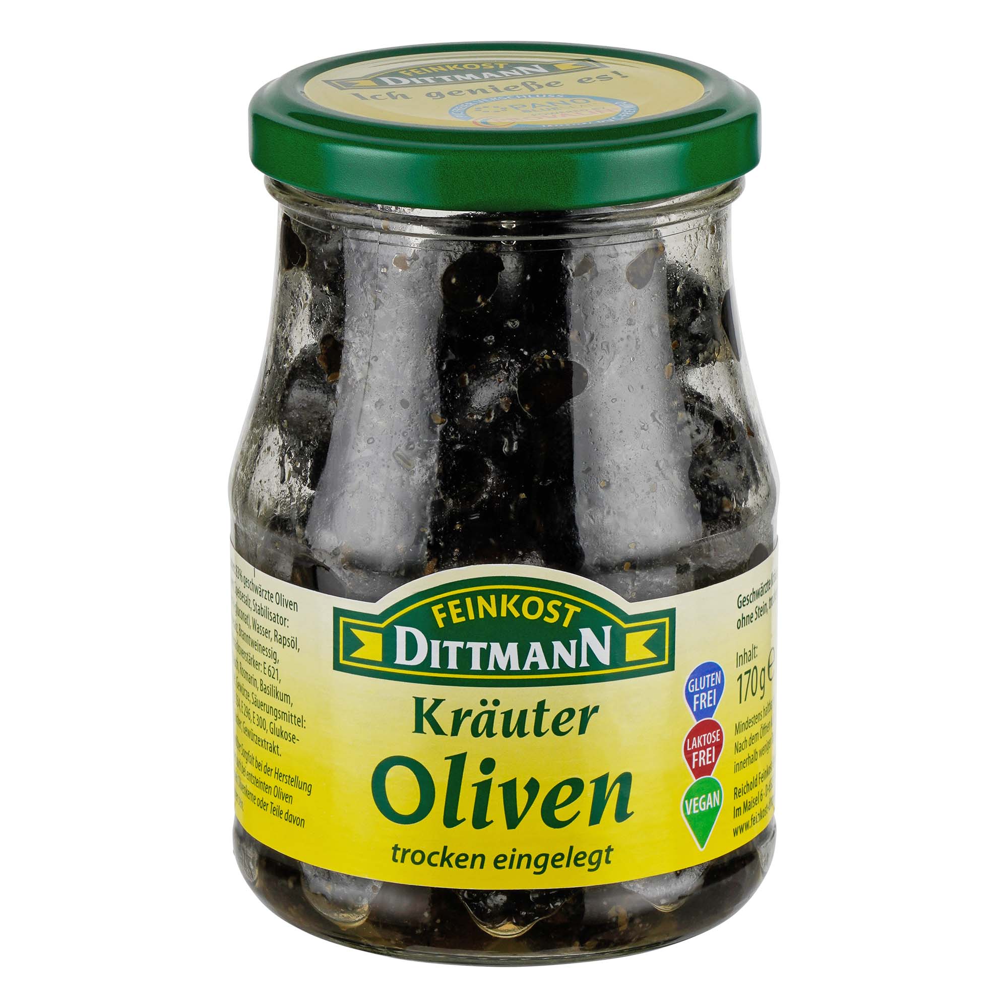 Feinkost Dittmann Kräuter Oliven Schwarz Trocken eingelegt 170g