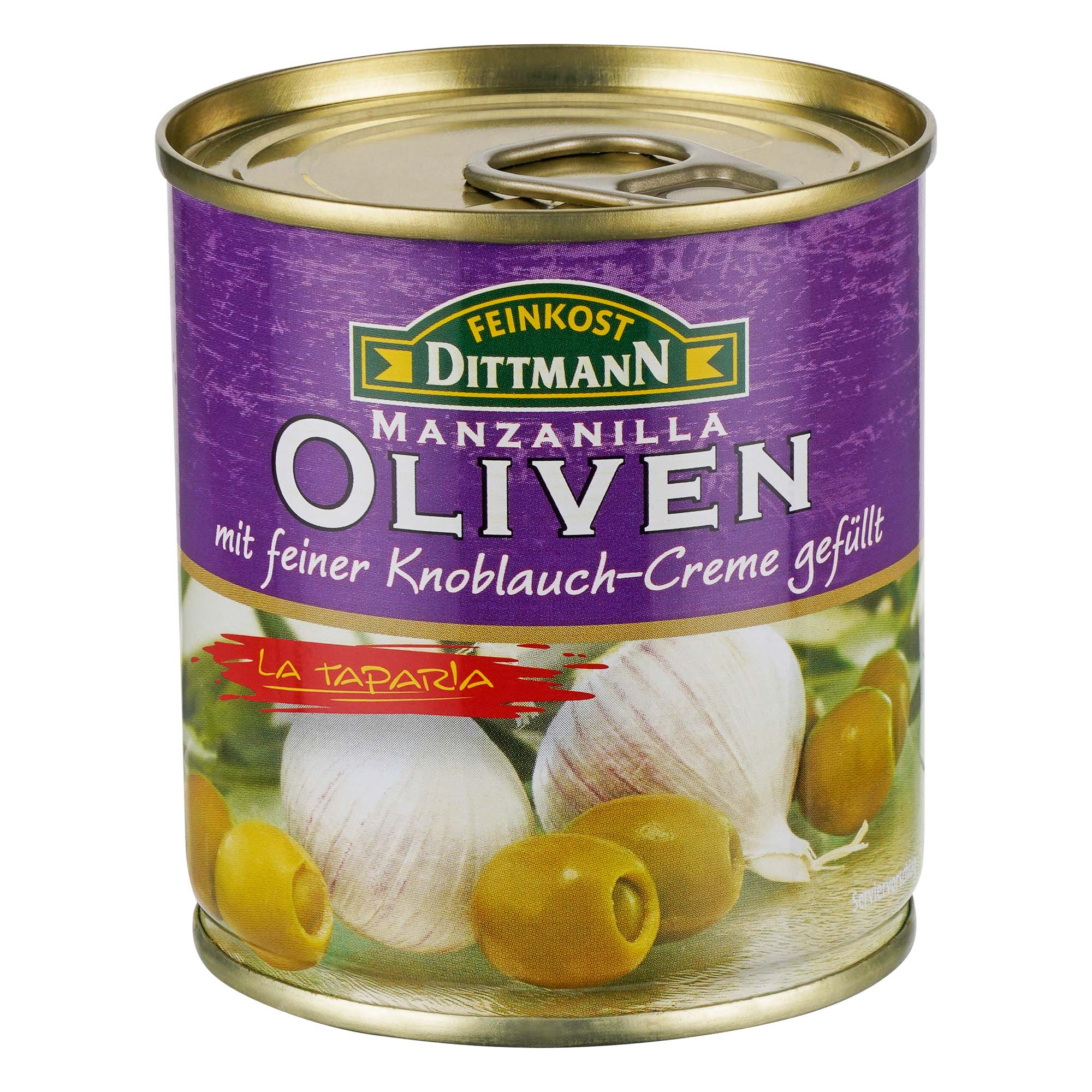 Mit den kleinen Dosen schafft Feinkost Dittmann eine ganze Variation an Spezialitäten um die Manzanilla Olive.