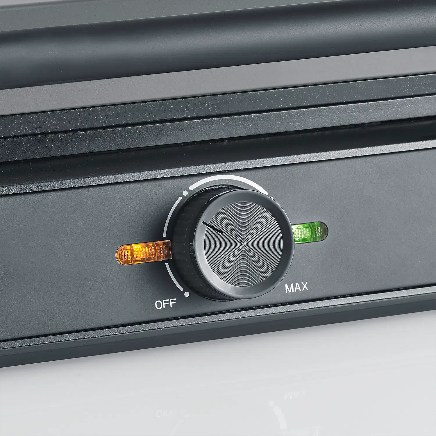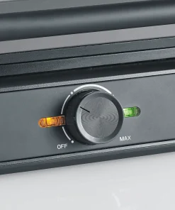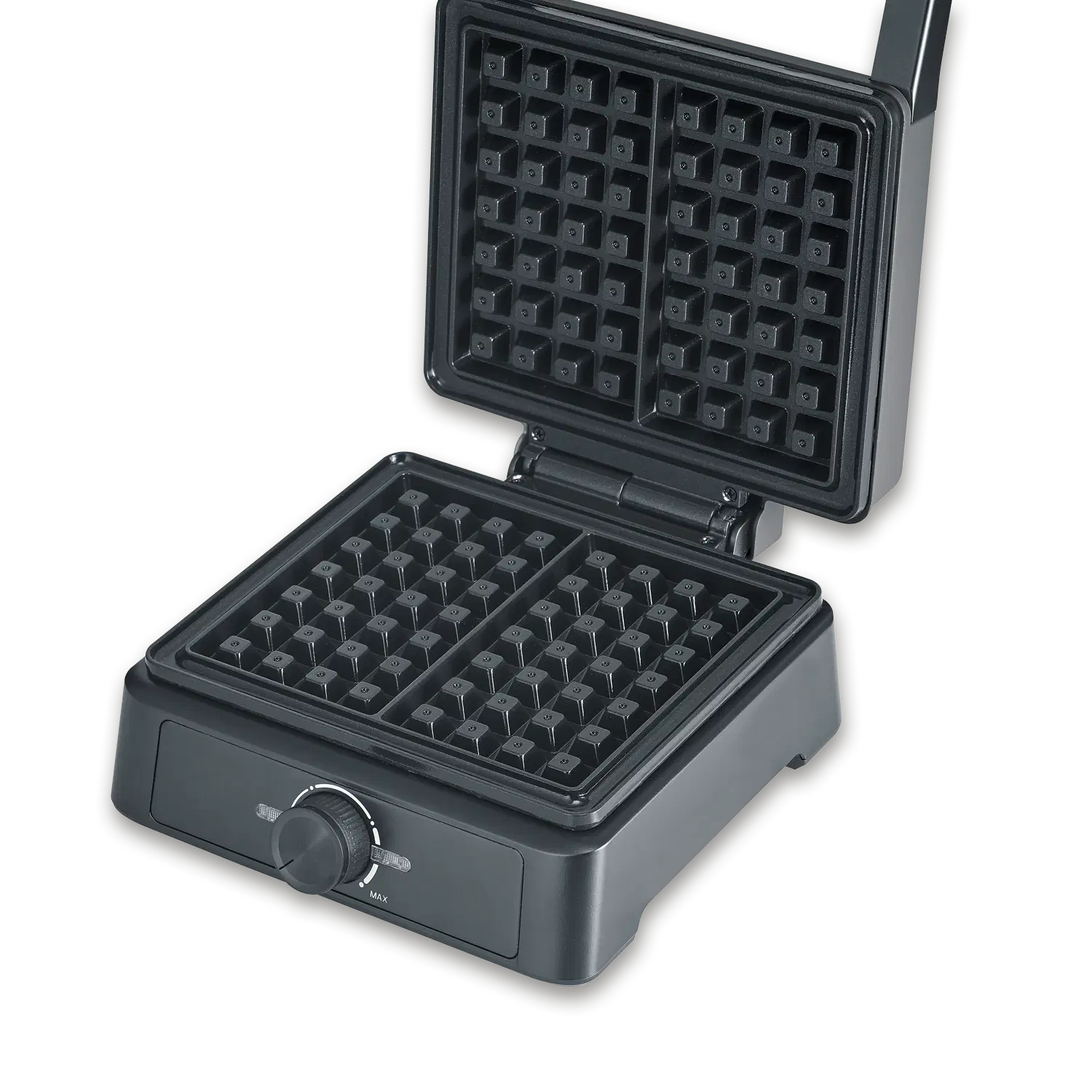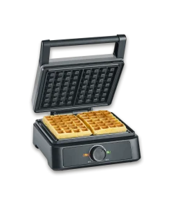 La compatta piastra per waffle belga convince per l’elegante design nero opaco e la distribuzione uniforme del calore per una doratura perfetta. La manopola di controllo a regolazione continua consente di creare waffle personalizzati, dal giallo oro al marrone croccante.