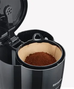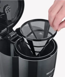 Up to ten cups of fresh-smelling coffee are prepared quickly and easily. The water level can be easily read on the transparent water reservoir. The coffee maker has a removable, dishwasher-safe filter insert 1×4 and additional drip cap.
