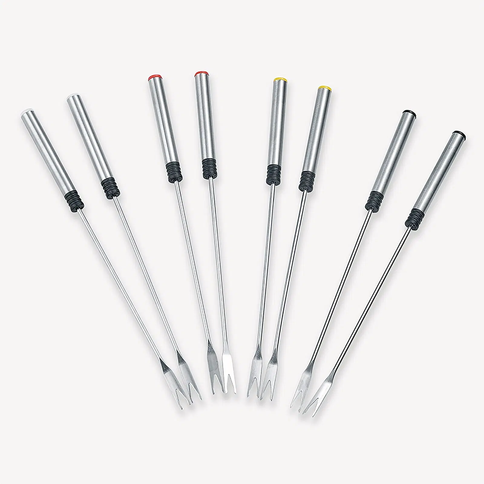 Kit completo: La confezione contiene una pentola, una griglia paraspruzzi removibile e 8 forchettine con manico colorato lavabili in lavastoviglie