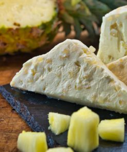 77,8% FRISCHKÄSE (KUHMILCH, SAHNE), Salz, Verdickungsmittel: Johannisbrotkernmehl, Milchsäurebakterien, Labaustauschstoff,10,7% Ananas, Zucker,MagerMILCHpulver, Aroma, Salz, Verdickungsmittel: Carrageen, Xanthan, Konservierungsstoff:Sorbinsäure Schwefeldioxid, Säuerungsmittel:Zitronensäure