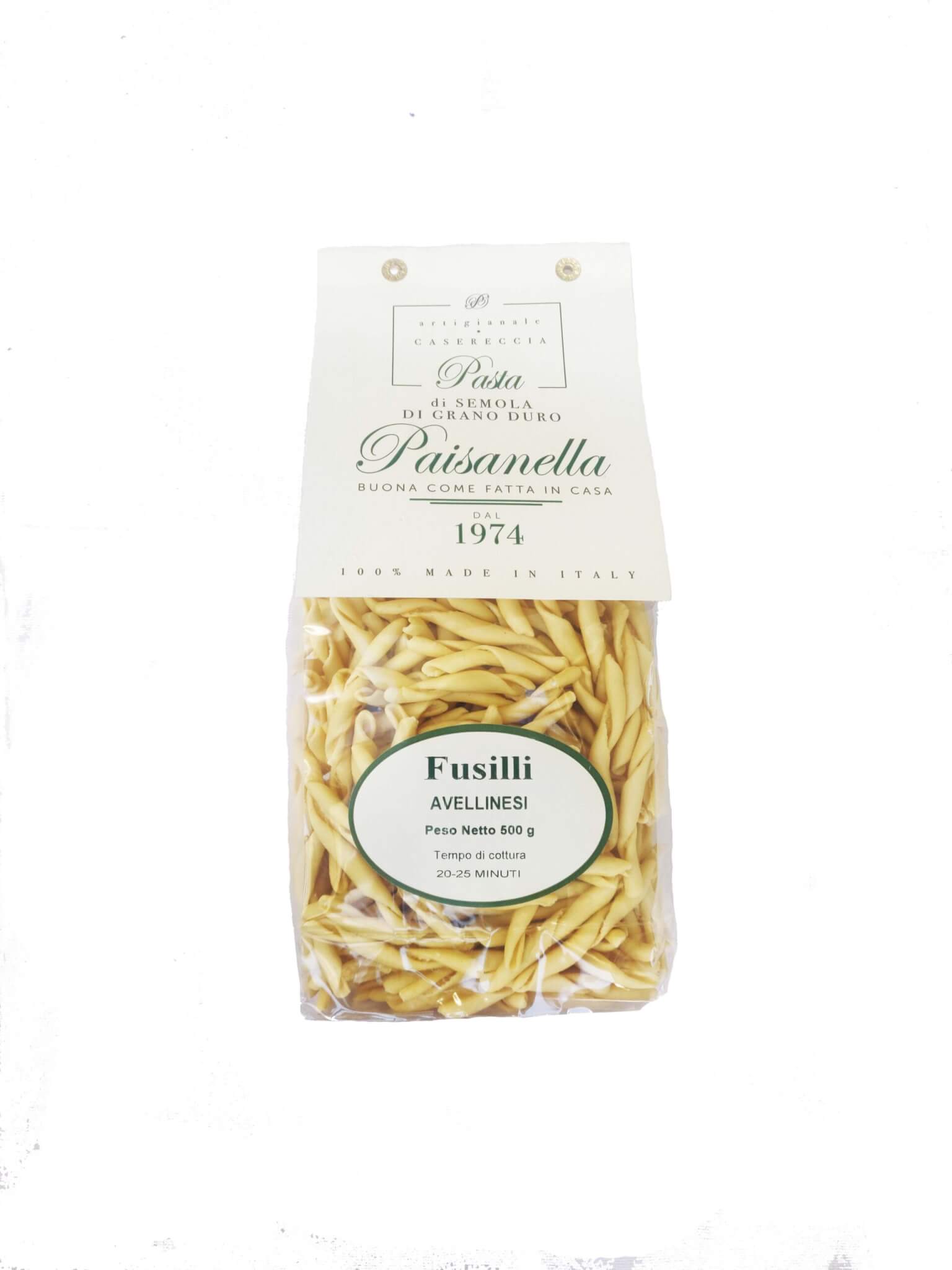 Diese Fusilli Avellinesi von Paisanella sehen aus wie hausgemacht. Traditionell wird diese Kalabresische Pasta über eine Art Stricknadel gerollt und erhält so ihre spezielle Form. Das Innere der Nudel nimmt Fleischsaucen wunderbar auf, aber auch Pesto passt hervorragend.