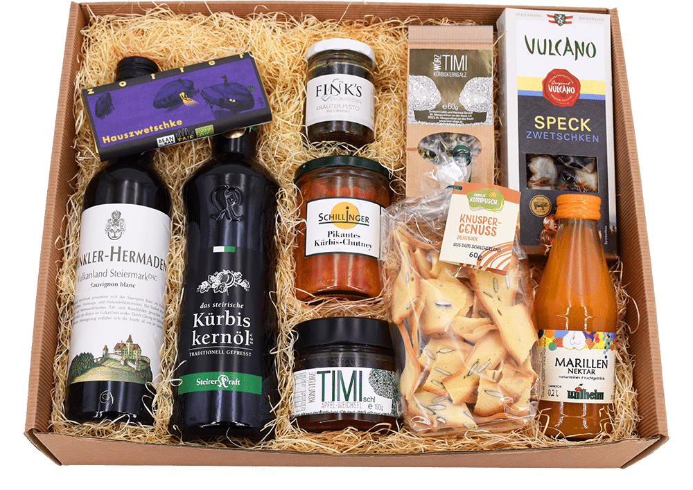 Für alle Gourmetliebhaber (und solche, die es noch werden wollen) eignet sich dieses Geschenk mit den unwiderstehlichen steirischen Delikatessen perfekt.