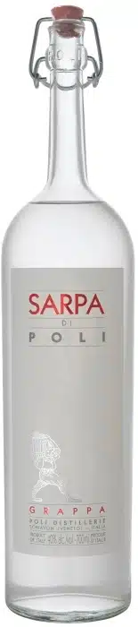 “Sarpa” ist Venetischer Dialekt und bedeutet ‘Trester’‚ das Ausgangsmaterial‚ aus dem der Grappa gebrannt wird. Sarpa wird aus dem Trester von Rebsorten mit blumigem und leicht kräuterartigem Aroma gewonnen‚ die im Kupferkolben mit Einzelzyklen unter Dampf destilliert werden.