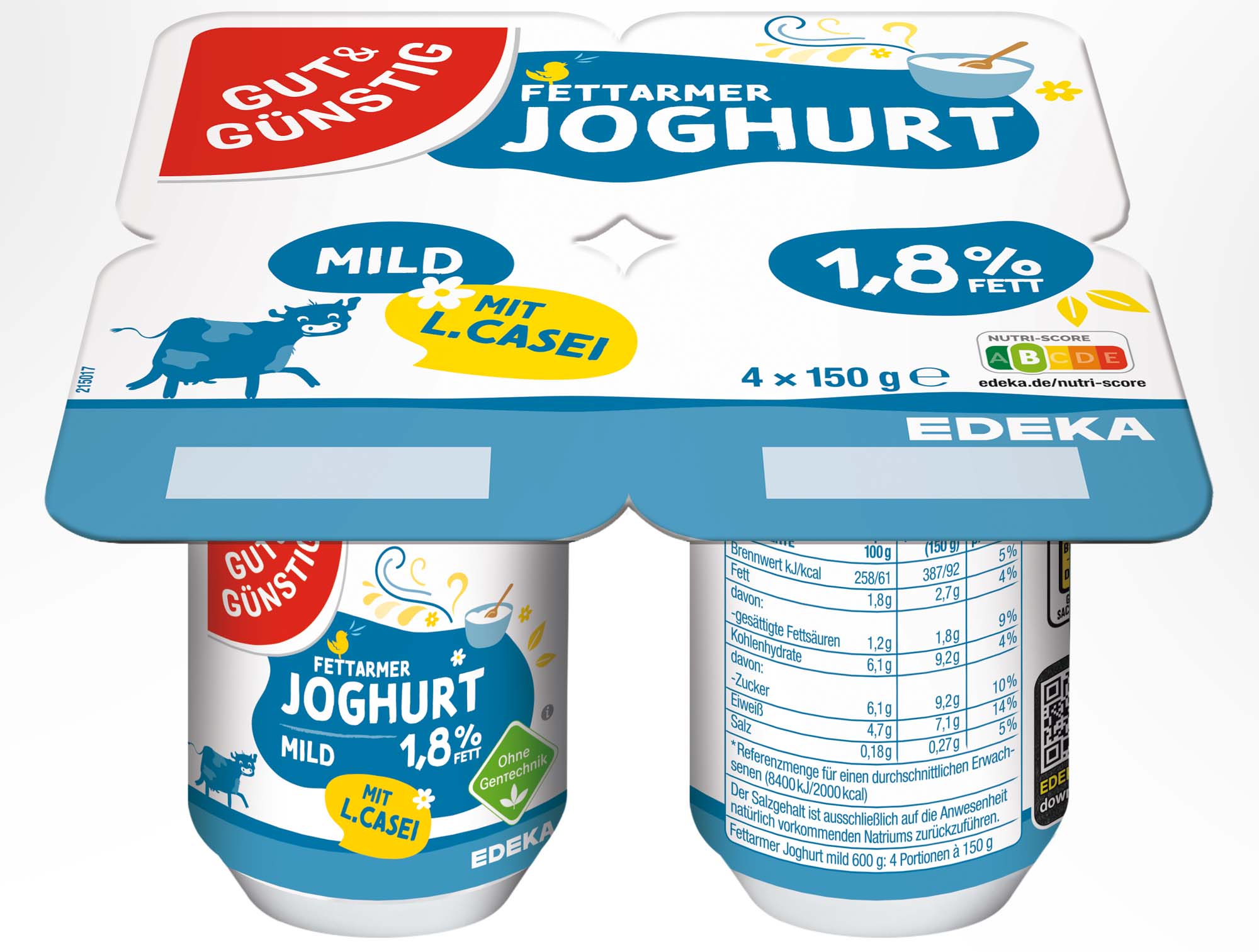 Gut & Günstig Fettarmer Joghurt mild mit L.Casei, 1,8% 4x150g