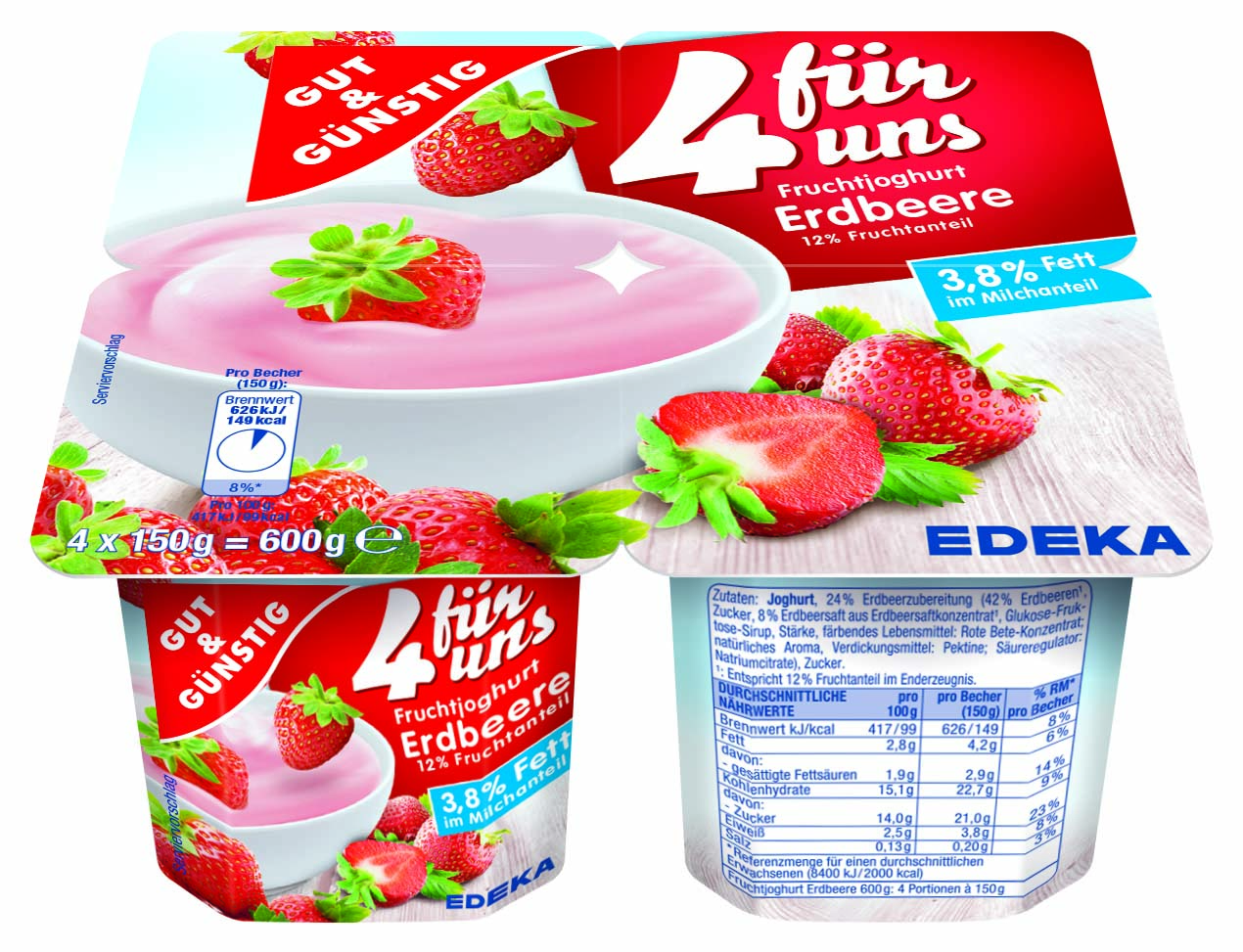 Gut & Günstig Fruchtjoghurt Erdbeer 3,8% 4x150g