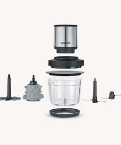 Hacher et émincer sans fil gênant. C’est possible avec le hachoir universel sans fil de SEVERIN. Les pleurs ennuyeux en coupant les oignons appartiennent désormais au passé et vous pouvez hacher de la viande, râper du parmesan ou piler de la glace en appuyant simplement sur un bouton. Il permet également de fouetter de la crème ou de la mousse.