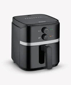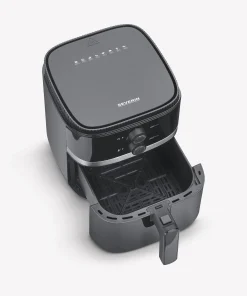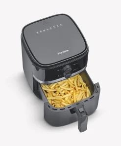 Deze heteluchtfriteuse is een goede allrounder in de keuken. Dankzij de gebruiksvriendelijke handbediening kun je supersnel beginnen met het bereiden van eten. De temperatuur kan individueel worden ingesteld van 80 tot 200 °C en de 60-minutentimer met signaaltoon herinnert je eraan wanneer je eten klaar is. Dankzij het kookkamervolume van 5 liter en de frituurmandinhoud van 4,3 liter kun je tot 800 g friet bereiden.