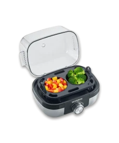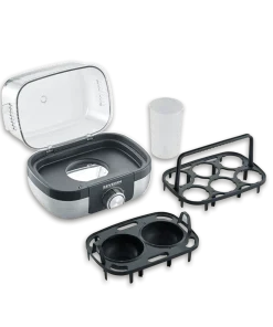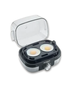 Szybkie i łatwe przygotowanie idealnego ugotowanego jajka na śniadanie. Z wkładką do gotowania jajek! Model EK 3169 wykonany z wysokiej jakości stali nierdzewnej umożliwia łatwe gotowanie do 6 jajek jednocześnie. Dzięki dodatkowej wkładce do gotowania na parze można bez wysiłku ugotować do dwóch jajek na parze lub warzywa, takie jak brokuły. Elektroniczny monitor czasu gotowania pozwala na łatwe i indywidualne ustawienie żądanego stopnia twardości – odmierzanie wody z dokładnością do mililitra to już przeszłość! Przezroczysta pokrywka na zawiasach ułatwia czyszczenie, a zastosowanie materiałów w 100% wolnych od BPA gwarantuje bezpieczeństwo użytkowania. Dzbanek z miarką i krajalnicą do jajek w zestawie!