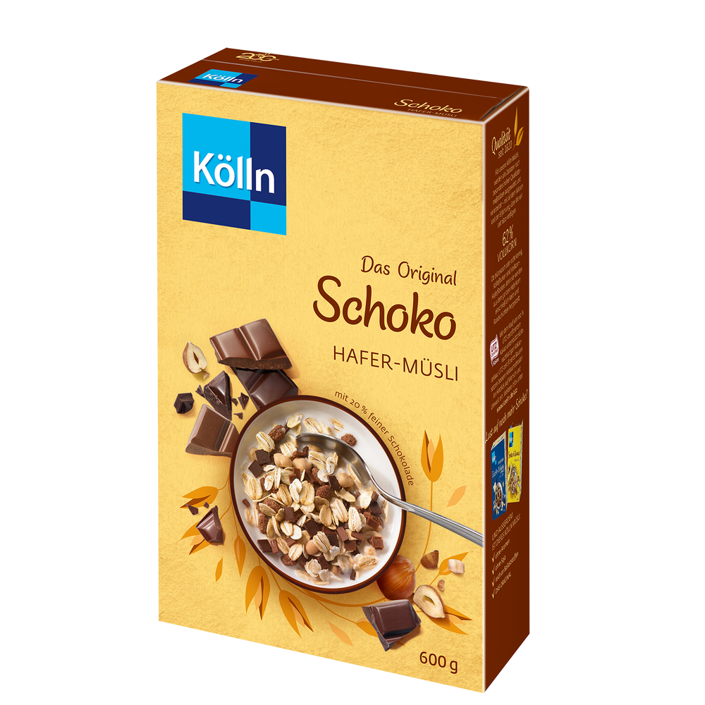 Kölln Schoko Hafer-Müsli – das Original! – lecker und vollwertig zugleich. Ende der 1970er Jahre nahmen wir das beliebte Frühstück Köllnflocken mit Kakao und Milch auf und erfanden so das Schoko Müsli. Komponiert aus Blütenzarten Köllnflocken, Echten Kölln Kernigen, Kölln Vollkorn Haferfleks® Schoko und Haselnusskrokant erhält diese Müsli-Spezialität ihre besondere Note durch ihren Anteil von 20 % Vollmilch- und Zartbitterschokolade.