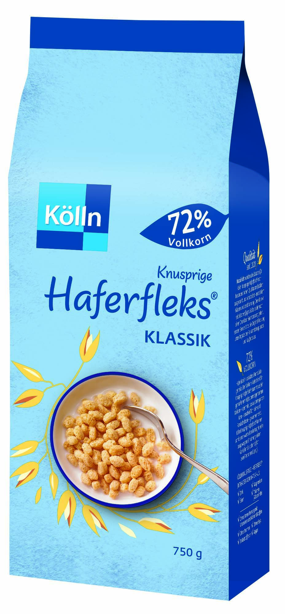 Kölln Knusprige Haferfleks® Klassik ein „pures“ Knusper-Vergnügen. Kölln Knusprige Haferfleks® Klassik bestehen zu 72 % aus Hafervollkorn, dem Zucker, Salz und Malz hinzugegeben wird. Sie sind reich an Ballaststoffen und enthalten von Natur aus Vitamin B1, Magnesium, Eisen und Zink.