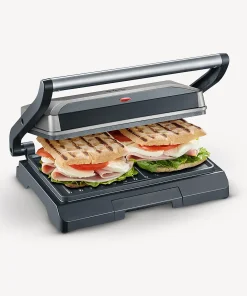 - Multifonction et pour tous les goûts : permet de préparer viandes, paninis, légumes, etc.