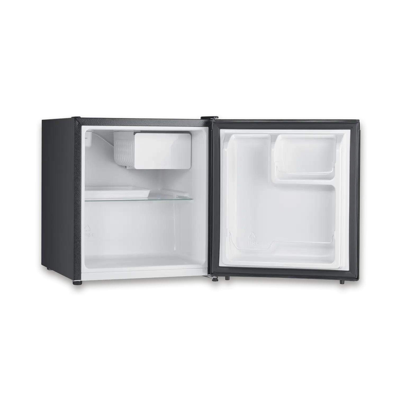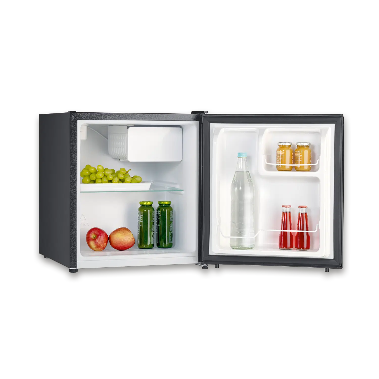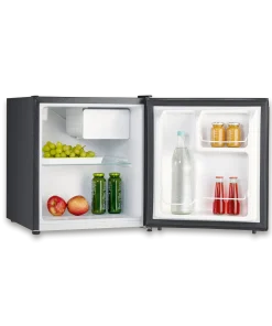 Este minifrigorífico tiene una capacidad de 45 litros y pertenece a la clase de eficiencia energética E. Tiene 2 compartimentos en la puerta y 1 estante de cristal para almacenar alimentos. Un asa integrada facilita su transporte y las bisagras de la puerta pueden cambiarse para adaptarla a las necesidades individuales. Las medidas del dispositivo son 50 x 44,5 x 46,8 cm.