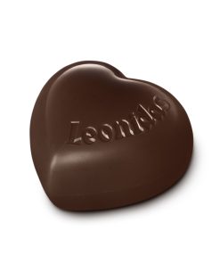Ein Herz aus Zartbitter Schokolade von Leonidas, gefüllt mit einer cremigen Zartbitter-Ganache.