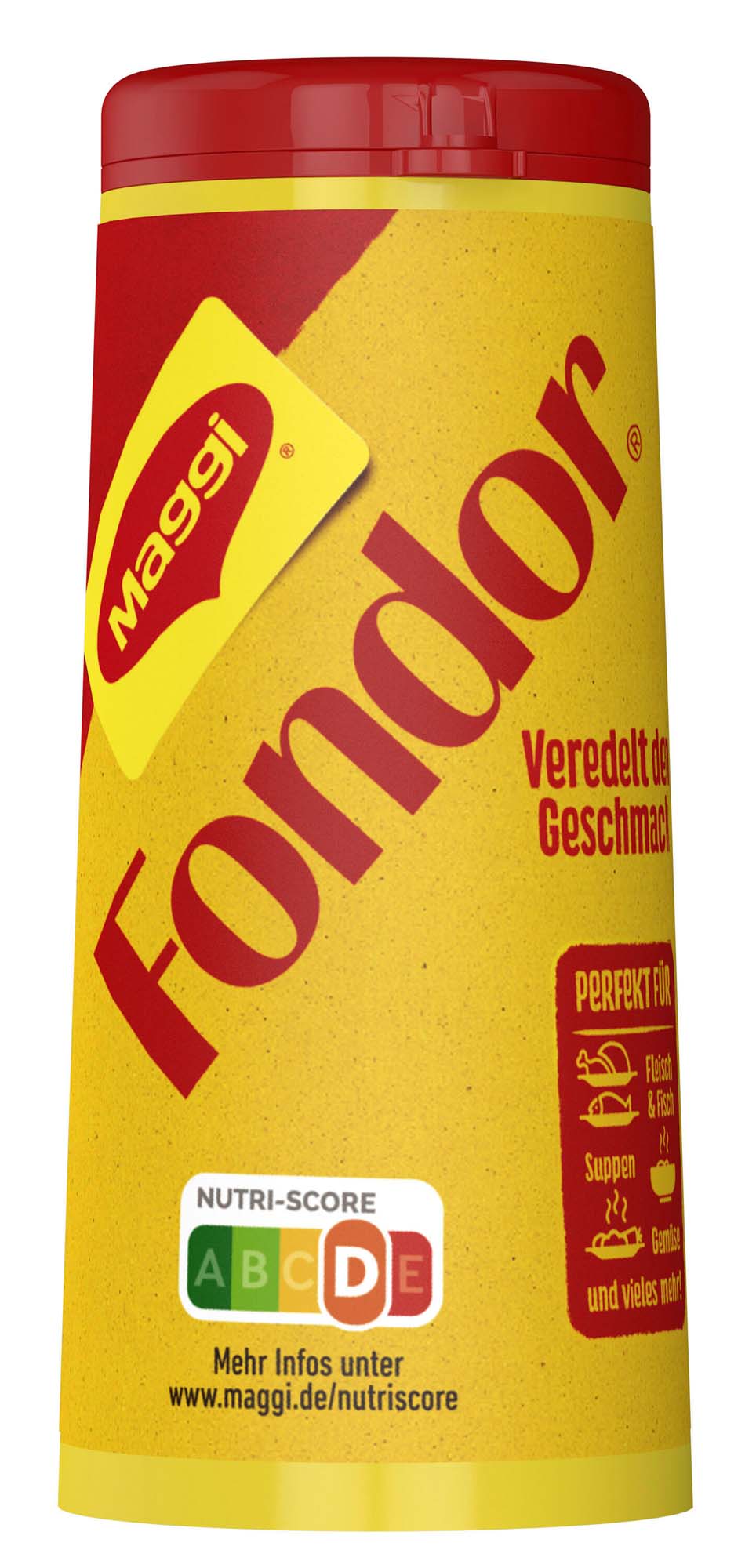 Maggi Fondor ist das beliebte Würzmittel im markanten gelbroten Streuer. Es gibt verschiedenen Gerichten das geschmackliche Extra, indem es den Eigenschmack der Speisen unterstreicht – und das bereits seit 1954. Einfach dosierbar und richtig lecker! Richtig würzen mit Maggi Fondor Ob zum Fleisch, Gemüse oder Fisch Würzen – Maggi Fondor veredelt den Geschmack vieler Gerichte und gibt ihnen eine feine Würzung. Ideal auch für Salate, Saucen, Suppen, Pommes Frites, Nudel-, Kartoffel- und Reisgerichte. Einfach während des Kochens dazugeben oder danach zum Abschmecken verwenden. Zusätzliches Salzen ist nicht erforderlich. Der praktische Streuer macht das genaue Dosieren besonders leicht. Weitere kreative und leckere Rezeptideen gibt’s auf maggi.de.