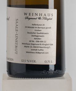 Exotische Nase aus Maracuja, Pfirsich, Kamille, Eisen und nasse Erde in der Nase. Leicht-mostig, frisch und trinkfreudig. Extrem lang am Gaumen. Ein absolutes Unikat aus Saale-Unstrut.