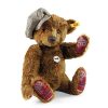 Am linken Bein ist eine vergoldete Metallplombe mit der geprägten Limitierungsnummer des Bären fest eingenietet.