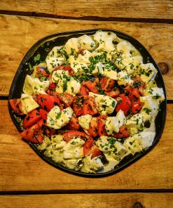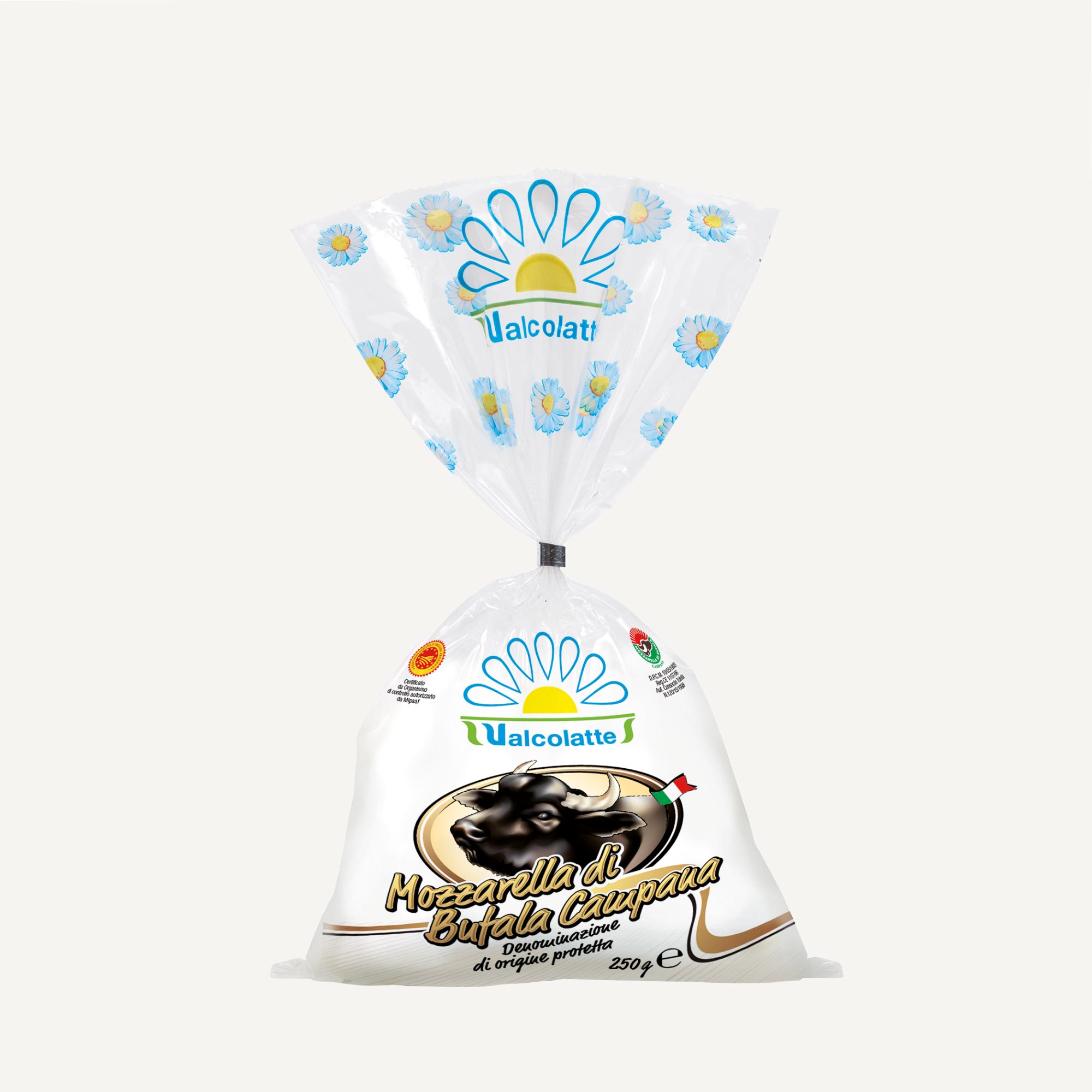 Kugelförmig, weich und elastisch mit einer feinen blättrigen Struktur wird diese Spezialität aus der Milch von Wasserbüffeln hergestellt. Der Mozzarella di bufala ist angenehm säuerlich und hat ein leicht kräuteriges Aroma. Menge: 250g