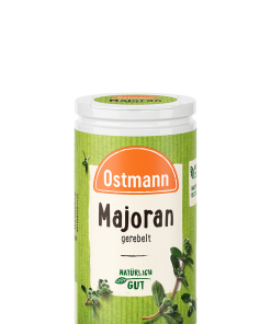 Ostmann Majoran gerebelt wird nicht nur wegen seines ausgezeichneten, guten Geschmacks gerne zum Kochen verwendet. Er macht deftige Speisen wie Eintöpfe und Kartoffelgerichte auch bekömmlicher. Ostmann Majoran verfeinert darüber hinaus Gurkengemüse, Bohnengerichte und Suppen. Kleiner Aufwand – große Wirkung: Bratkartoffeln vor dem Servieren mit etwas gerebeltem Majoran bestreuen.