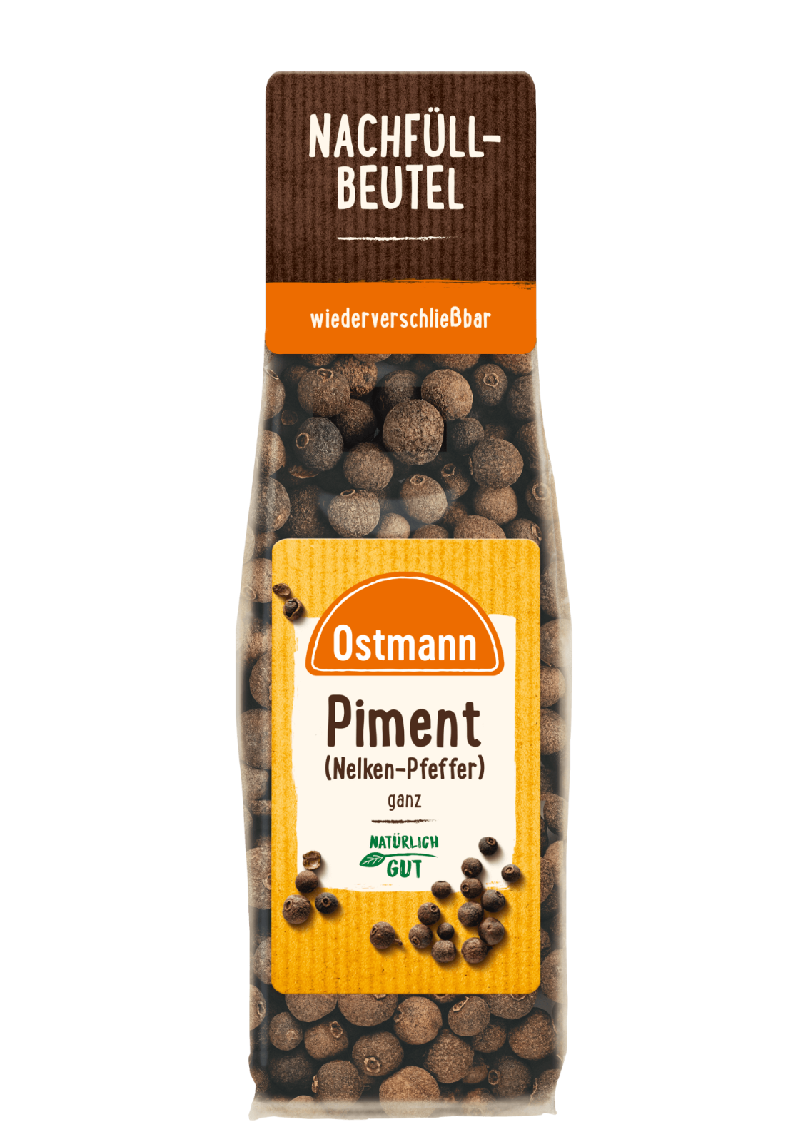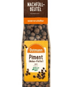 Ostmann Piment, ganz passt zu würzigen als auch süßen Gerichten, wie Suppen, Saucen, Marinaden, Beizen, Fisch, Fleisch, Wild und Eingemachtem.