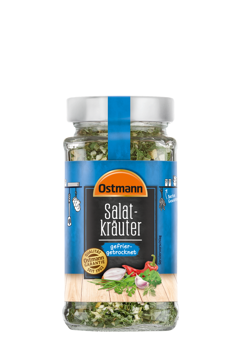 Ostmann Salatkräuter sind aromaschonend gefriergetrocknet. Passen zu Salatsaucen, Salaten, Pilzen, Dips, Saucen und Suppen, Eintöpfen und Kartoffelgerichten.Ideal zu Geflügel, Kartoffeln, Eier- und Fischgerichten.